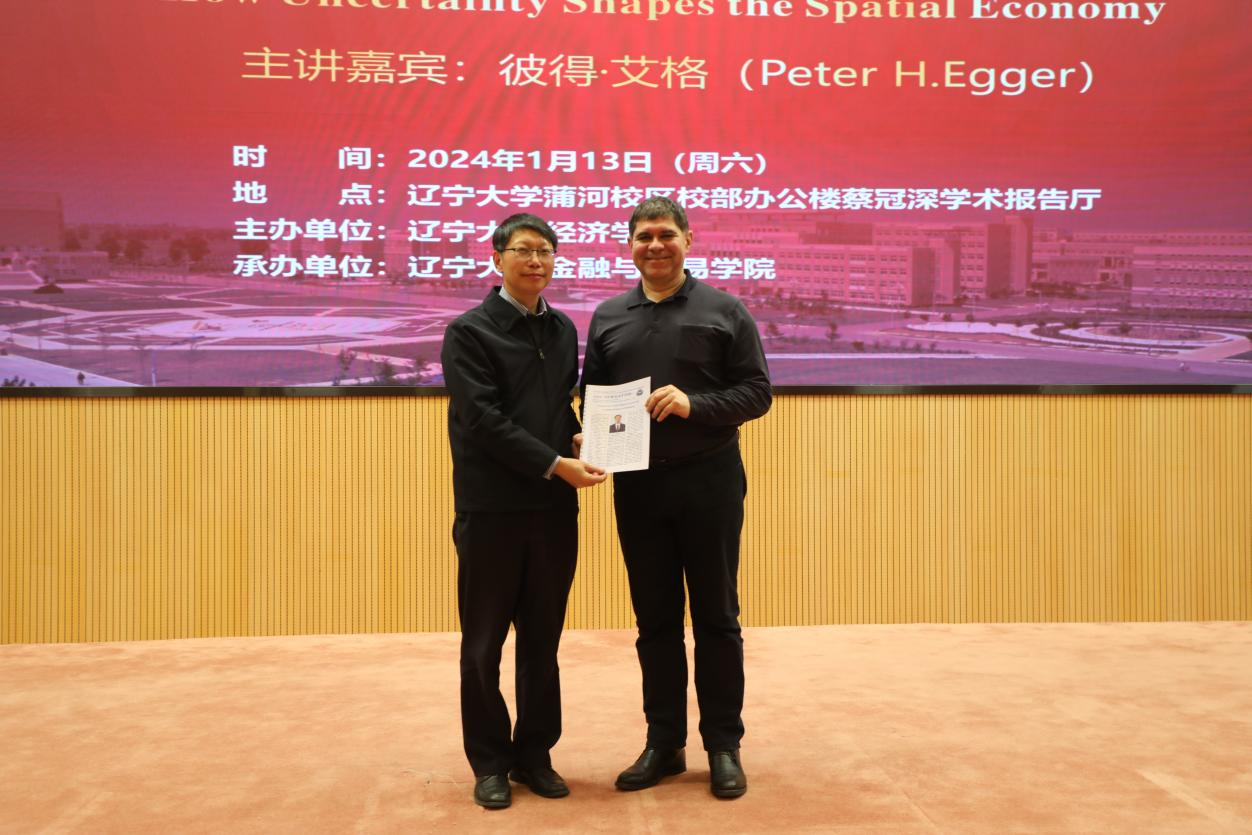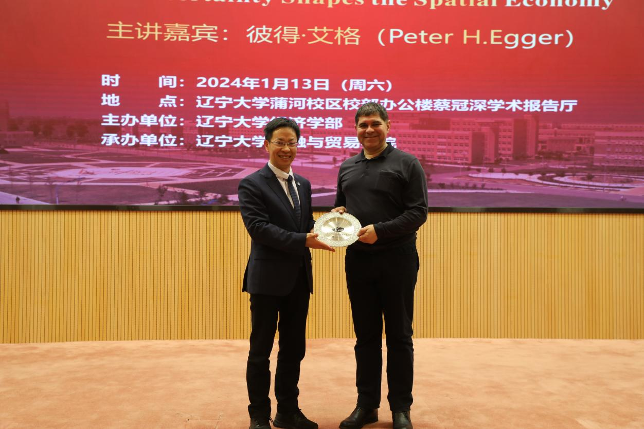 1月13日下午,6776永利集团宋则行海外名家大讲堂(第十讲)在蒲河校区校部办公楼蔡冠深学术报告厅举行。国际著名经济学家、苏黎世联邦理工学院彼得・艾格(Peter H.Egger)教授应邀作题为《不确定性如何影响空间经济》(How Uncertainty Shapes the Spatial Economy)的学术报告。6776永利集团党委副书记、校长余淼杰教授出席报告会并致欢迎辞。暨南大学产业经济研究院李杰教授,yl6776永利集团副主任霍伟东教授、中国开放经济研究院分管日常工作副院长崔铮教授、商学院副院长韩亮亮教授、新华国际商学院副院长王晓辉教授出席报告会。会议由6776永利集团中国经济研究院副院长兼金融与贸易学院副院长马湘君教授主持。