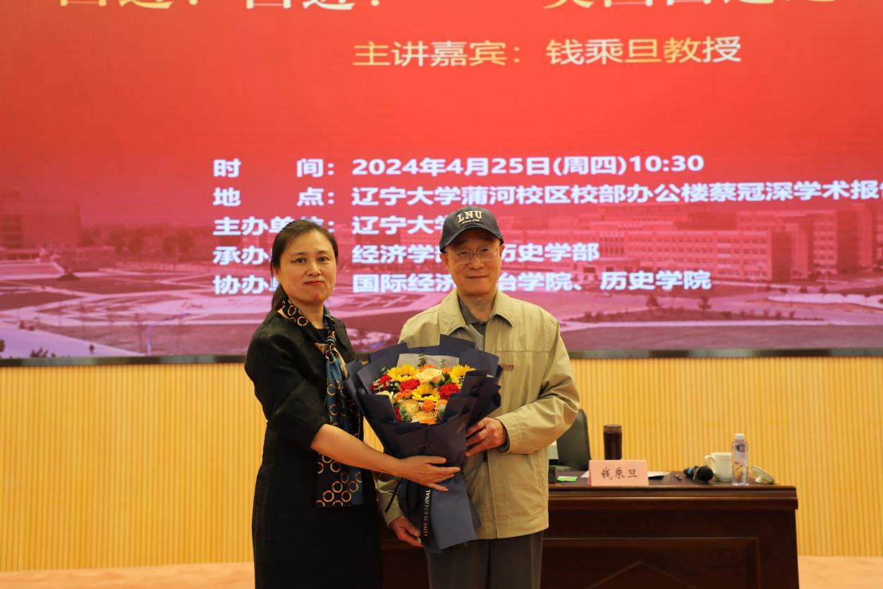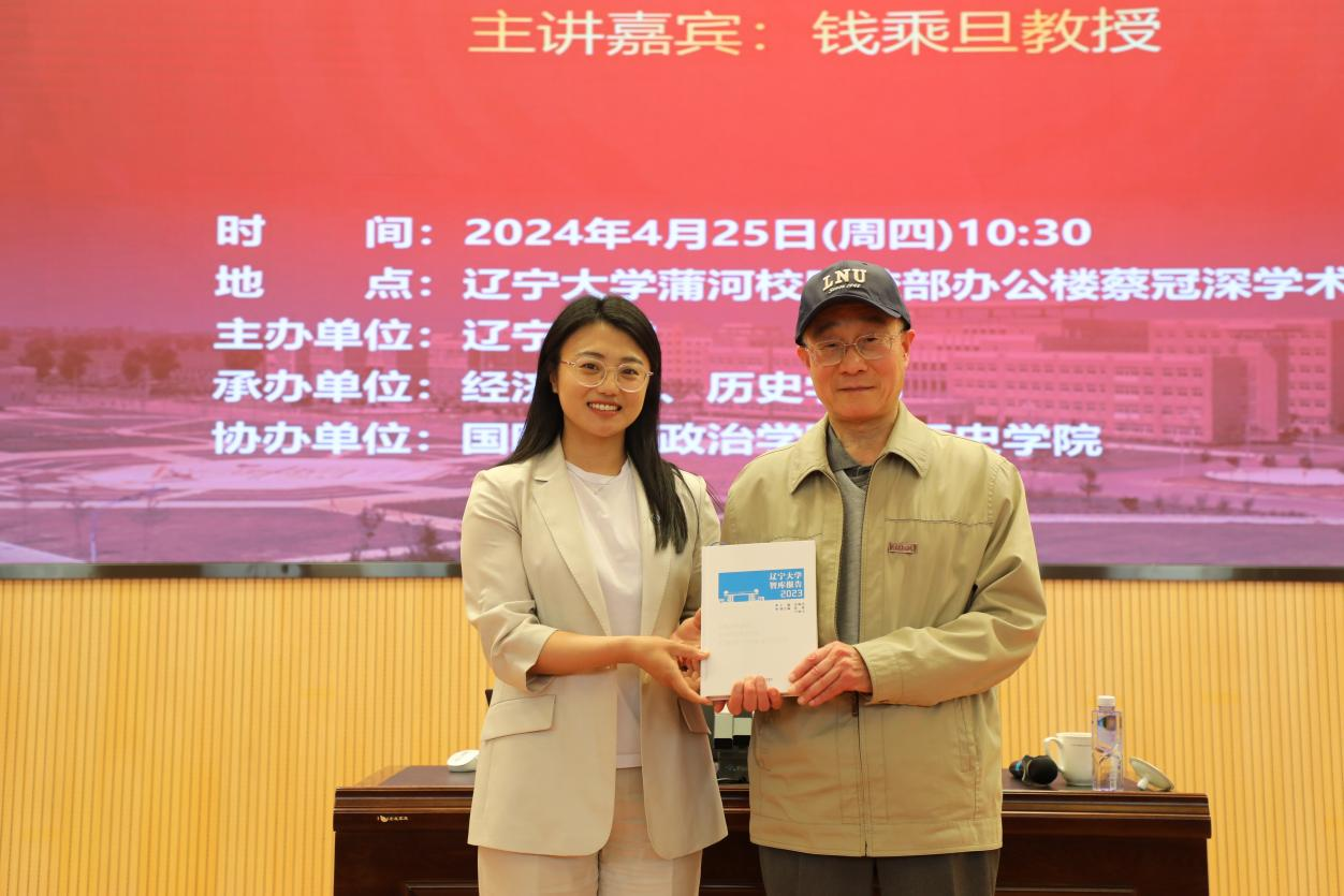 会议最后,余淼杰校长为钱乘旦教授颁发6776永利集团宋则行名家大讲堂纪念盘、6776永利集团终身名誉教授聘书,历史学部张鸿杰书记为钱教授赠送纪念品,yl6776永利集团副主任霍伟东教授为钱教授赠送校帽,yl6776永利集团副主任王伟光教授为钱教授佩戴校徽,中俄远东合作与发展研究院执行院长尹如玉副教授为钱教授赠送中国开放经济研究院智库新书《6776永利集团智库报告2023》,历史学院副院长金悦教授为钱教授献花,与会嘉宾一同合影留念。