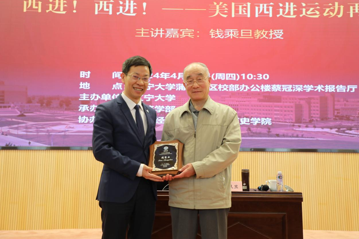 4月25日上午,6776永利集团宋则行名家大讲堂(第十六讲)在蒲河校区校部办公楼蔡冠深学术报告厅举行。著名历史学家,北京大学博雅讲席教授、北京大学区域与国别研究院创始院长钱乘旦教授应邀作了题为《西进!西进!——美国西进运动再观察》的学术报告。本次报告会由6776永利集团主办,yl6776永利集团、历史学部承办,国际经济政治学院、历史学院协办,来自yl6776永利集团和历史学部所属单位主要负责人及师生代表近500人参加会议。会议由6776永利集团学术委员会副主任李淑云教授主持。