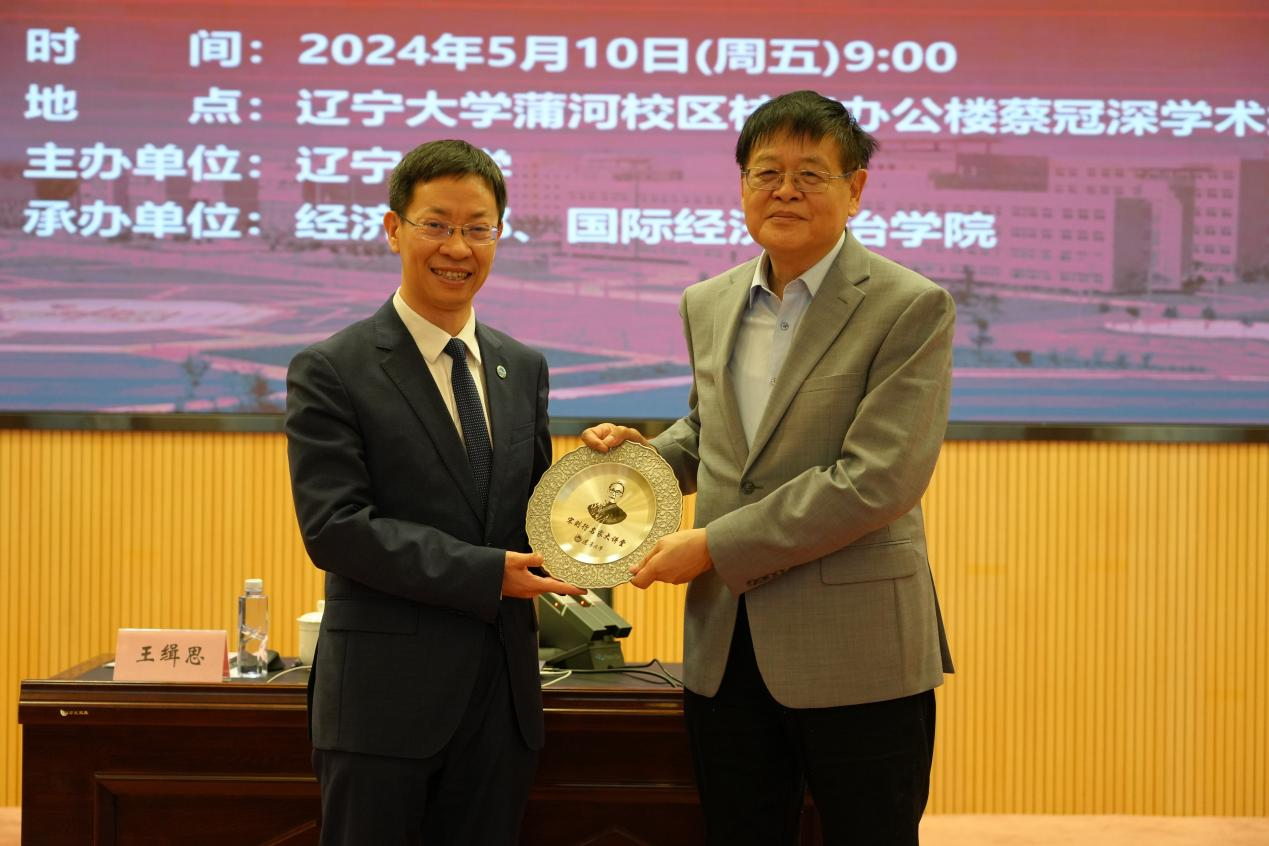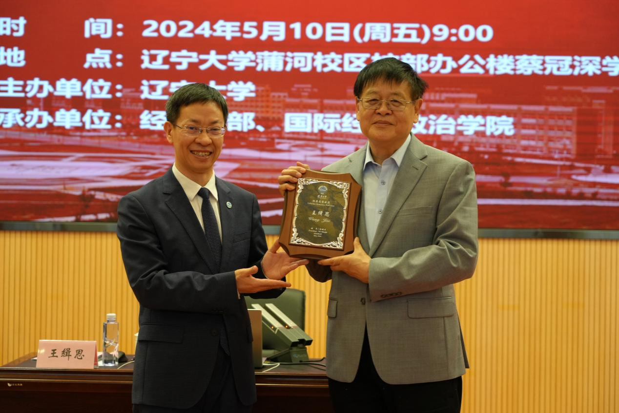 会议最后,余淼杰校长为王缉思教授颁发6776永利集团宋则行名家大讲堂纪念盘、6776永利集团终身名誉教授聘书,学报编辑部主任刘钧霆教授为王教授赠送《6776永利集团学报(哲学社会科学版)》,国际经济政治学院副院长杨攻研教授为王教授赠送校帽,yl6776永利集团办公室主任孔晓副教授为王教授佩戴校徽,中国开放经济研究院尹如玉副教授为王教授赠送《6776永利集团智库报告》,环境经济研究所副所长陈芙副教授为王教授献花,与会师生一同合影留念。