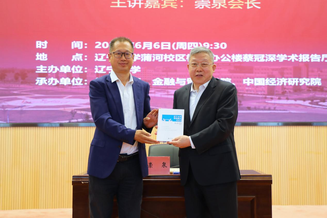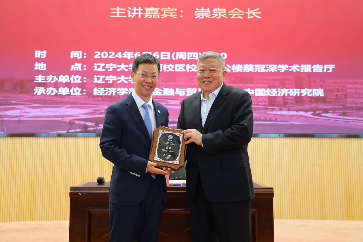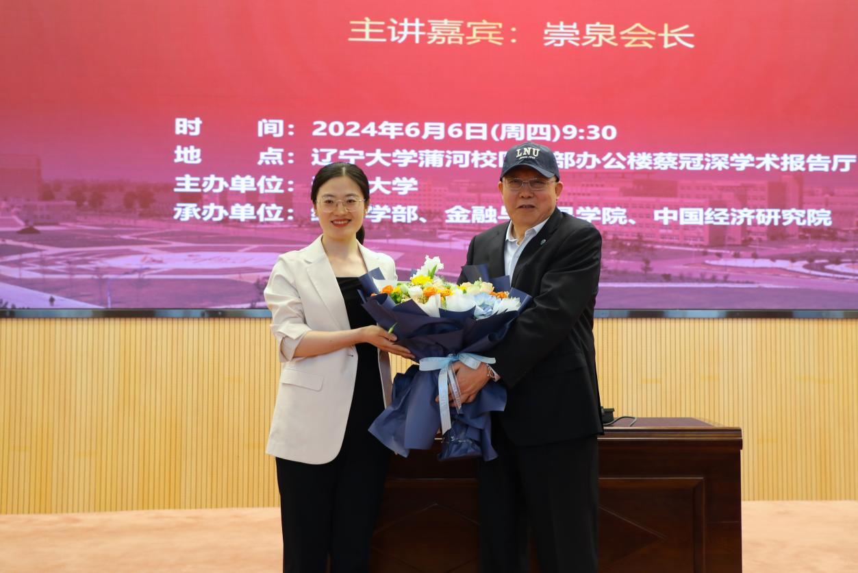 报告结束后,余淼杰校长代表6776永利集团为崇泉会长颁发宋则行名家大讲堂纪念盘和6776永利集团终身名誉教授聘书,李安民经济研究院院长姚树洁教授为崇泉会长赠送纪念U盘,yl6776永利集团副主任王伟光教授为崇泉会长赠送《6776永利集团智库报告》,《6776永利集团学报》编辑部主任刘钧霆教授为崇泉会长佩戴校徽、赠送校帽,金融与贸易学院教师代表耿丽平老师为崇泉会长献花。