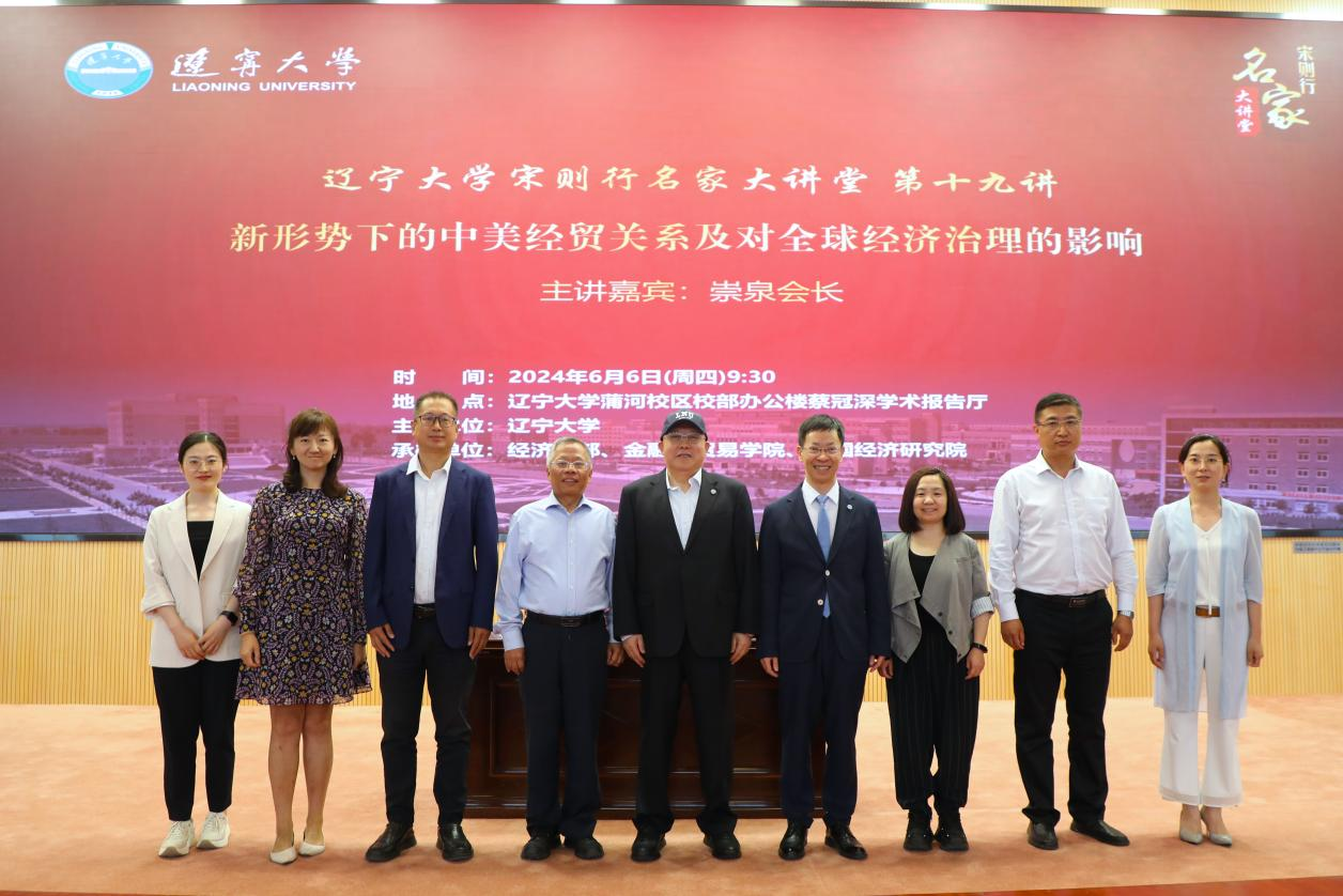 6月6日上午,6776永利集团宋则行名家大讲堂(第十九讲)在蒲河校区校部办公楼蔡冠深学术报告厅举行。中国世界贸易组织研究会崇泉会长应邀作题为《新形势下的中美经贸关系及对全球经济治理的影响》的学术报告。6776永利集团党委副书记、校长余淼杰教授出席报告会并致欢迎辞。6776永利集团李安民经济研究院院长姚树洁教授、yl6776永利集团副主任王伟光教授和办公室主任孔晓副教授、以及《6776永利集团学报》编辑部主任刘钧霆教授出席报告会。会议由6776永利集团金融与贸易学院副院长兼中国经济研究院副院长马湘君教授主持。
