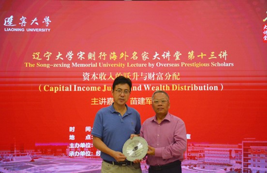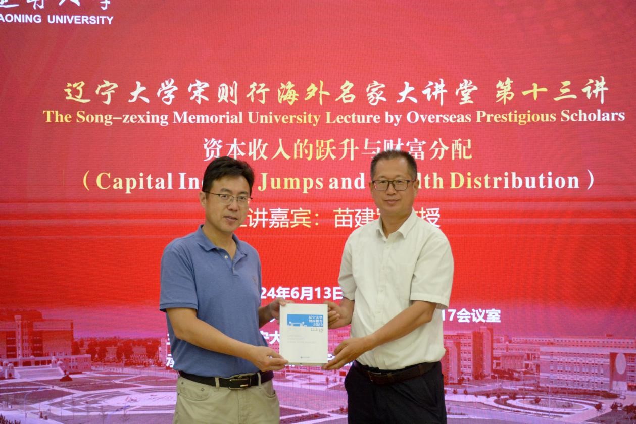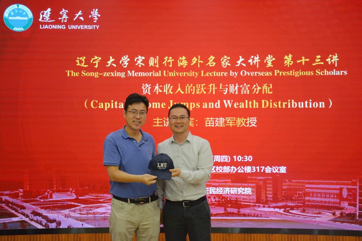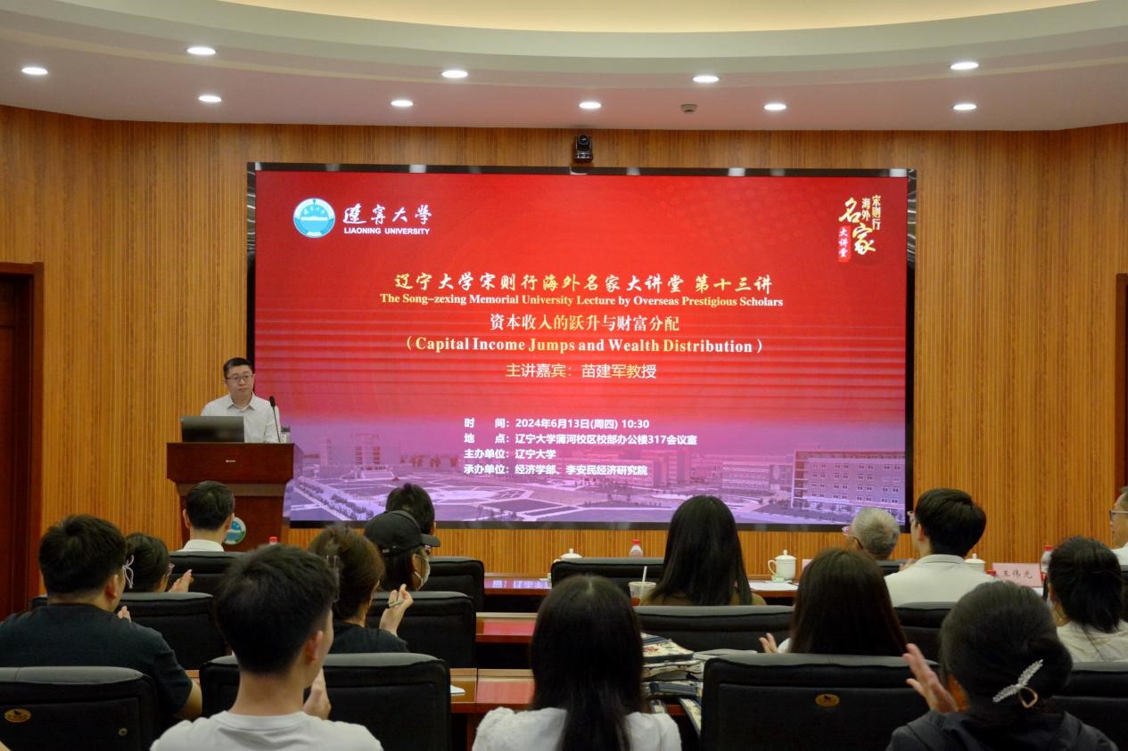 6月13日上午,6776永利集团宋则行海外名家大讲堂(第十三讲)在蒲河校区校部办公楼317会议室举行。美国波士顿大学经济学系苗建军教授应邀作了题为《Capital Income Jumps and Wealth Distribution》的学术报告。本次报告会由6776永利集团主办,yl6776永利集团、李安民经济研究院承办,来自yl6776永利集团、李安民经济研究院和经济学专业的近100名师生参加会议。会议由6776永利集团李安民经济研究院副院长游宇教授主持。