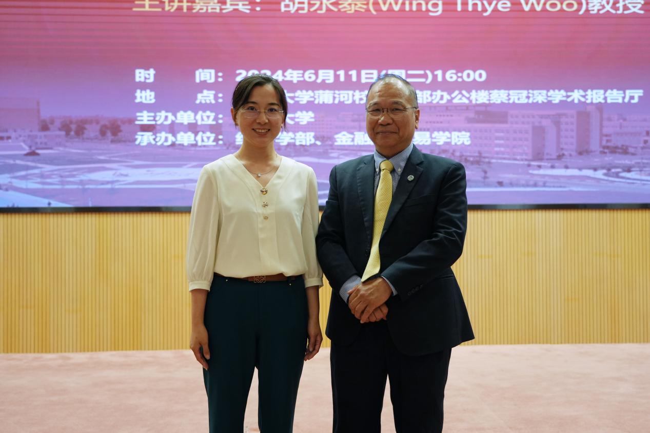 余淼杰校长对胡永泰教授应邀出席6776永利集团宋则行海外名家大讲堂表示诚挚欢迎,并详细介绍了胡教授的学术背景与学术成就,特别强调了他在国际贸易领域的崇高地位和在学术界作出的重大贡献。胡永泰教授是研究计划经济转轨和宪制改革的先驱经济学家,师出名门,学养深厚。他长期深耕宏观经济和国际金融理论,对于全球以及东亚经济增长有着独到的见解和许多战略性、前瞻性和创造性构想,始终勇立国际经济问题前沿,学术造诣深厚,研究成果丰硕。胡教授治学以世界繁荣为己任,始终秉承科学严谨性和实践可用性,注重理论创新与实践应用结合,为众多国家政府部门和国际机构在宏观经济、外汇管理、国有企业重组、贸易问题和金融部门发展等方面提供了宝贵的决策咨询和建议。面对授业恩师,余淼杰校长对胡教授的学术水平给予了高度评价,并对胡教授的谆谆教诲、悉心指导以及一直以来的支持和鼓励表示崇高的敬意和衷心的感谢。