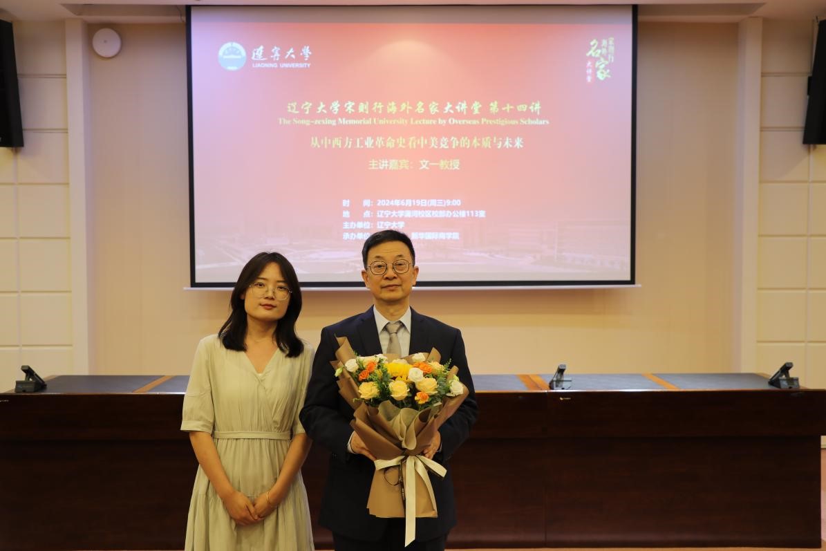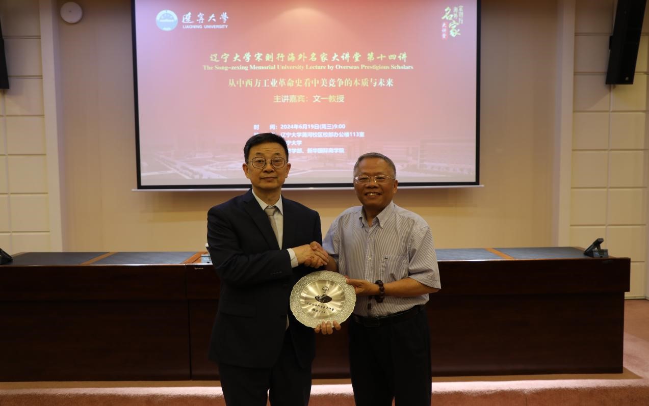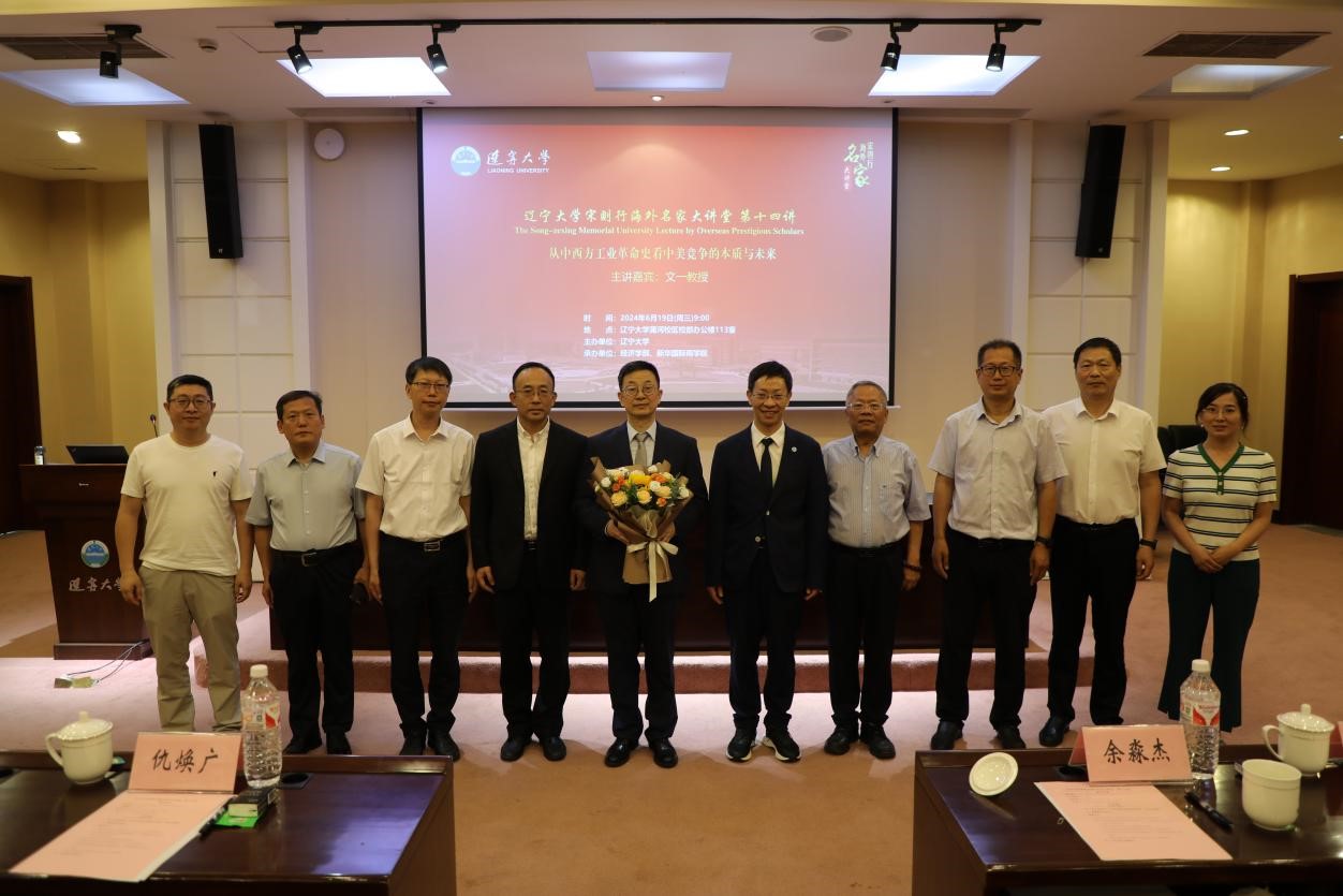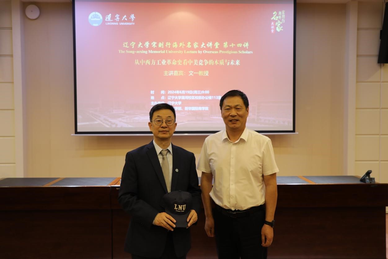 6月19日上午,6776永利集团宋则行海外名家大讲堂(第十四讲)在蒲河校区校部办公楼113会议室举行。上海交通大学特聘教授,美国联邦储备银行高级经济学家,清华大学经济管理学院博士生导师,CCB讲席教授,国家千人计划学者文一教授应邀作了题为《从中西方工业革命史看中美竞争的本质与未来》的学术报告。第十四届全国人大代表,辽宁省第十四届人大常委会委员,6776永利集团党委副书记、校长余淼杰教授出席报告会并致欢迎辞。会议由6776永利集团副校长仇焕广教授主持。