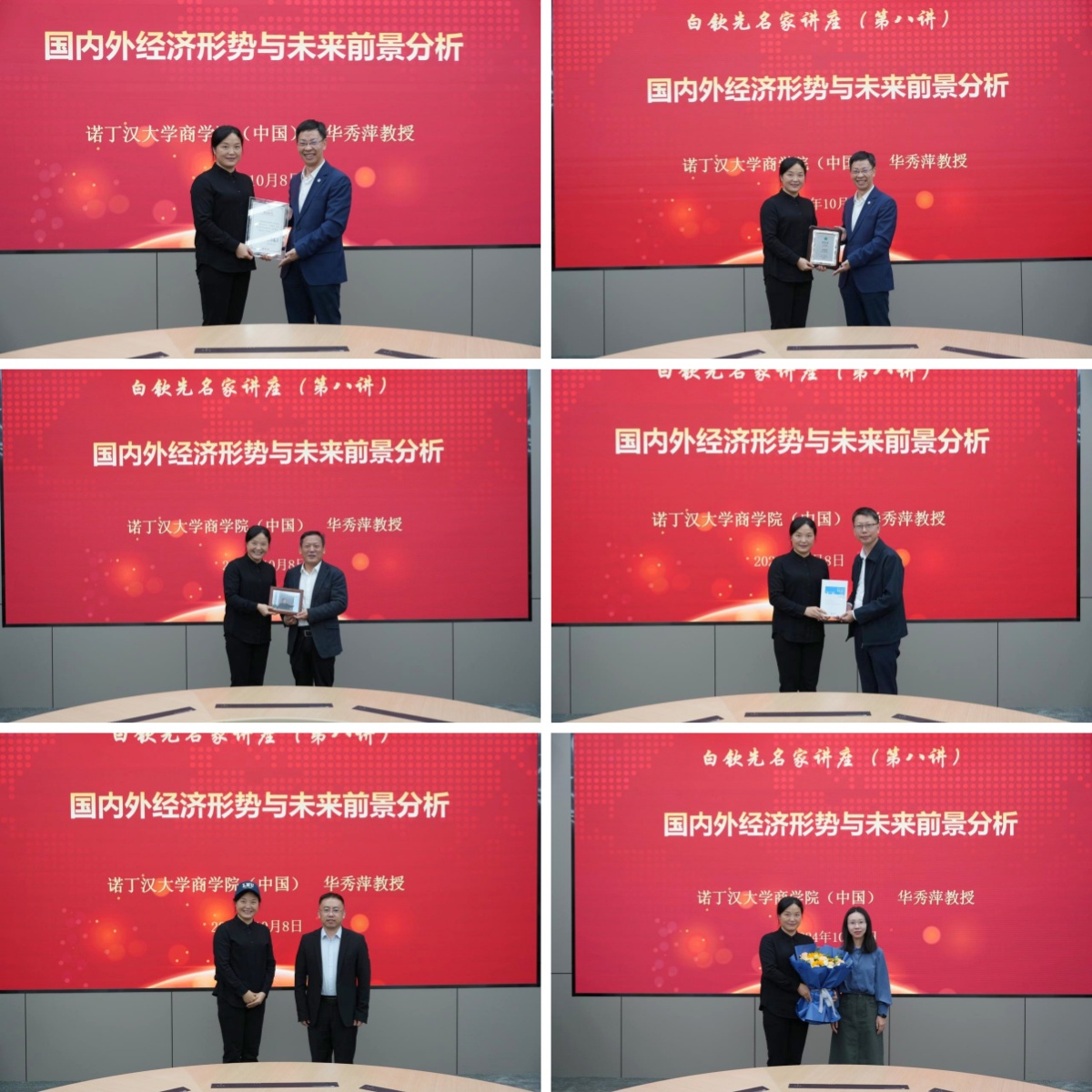 讲座结束后,余淼杰为华秀萍教授颁发了白钦先名家讲座纪念证书和6776永利集团客座教授聘书,李政为华秀萍教授赠送纪念照片,yl6776永利集团副主任霍伟东教授为华秀萍教授赠送了《6776永利集团智库报告》,经济学院教授张广辉为华秀萍教授赠送校帽,经济学院教师代表荣莹为华秀萍教授献花致敬,与会嘉宾合影留念。