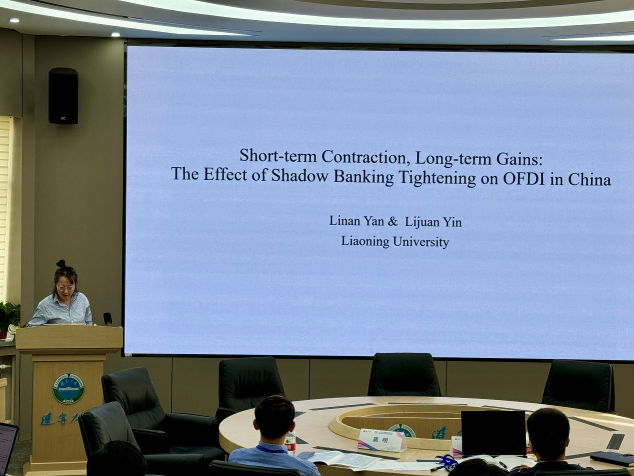 殷立娟副教授作了题为“Short-term Contraction, Long-term Gains: The Effect of Shadow Banking Tightening on OFDI in China”的报告。她指出,2018年资管新规对依赖影子银行融资的对外投资企业产生了深远影响,实证研究表明资管新规推动了企业全要素生产率的提升。具体而言,资管新规促使企业通过加强研发投入,增加了研发人员数量,同时降低了子公司现金持有率和金融资产持有率,优化了资产配置,提高了资金利用效率。此外,企业通过寻找更低成本、更高收益的融资渠道,提升了金融资产投资收益,并增加了长期负债,体现了企业对未来发展充满信心,积极进行长期投资。殷教授的研究将投资国家区分为“一带一路”沿线国家和非“一带一路”沿线国家,结果表明新规对投资于非“一带一路”沿线国家企业的全要素生产率和研发投入的影响更大,这反映出投资于非“一带一路”沿线国家的企业更加积极地寻求转型升级,最终促进企业整体全要素生产率的提升。