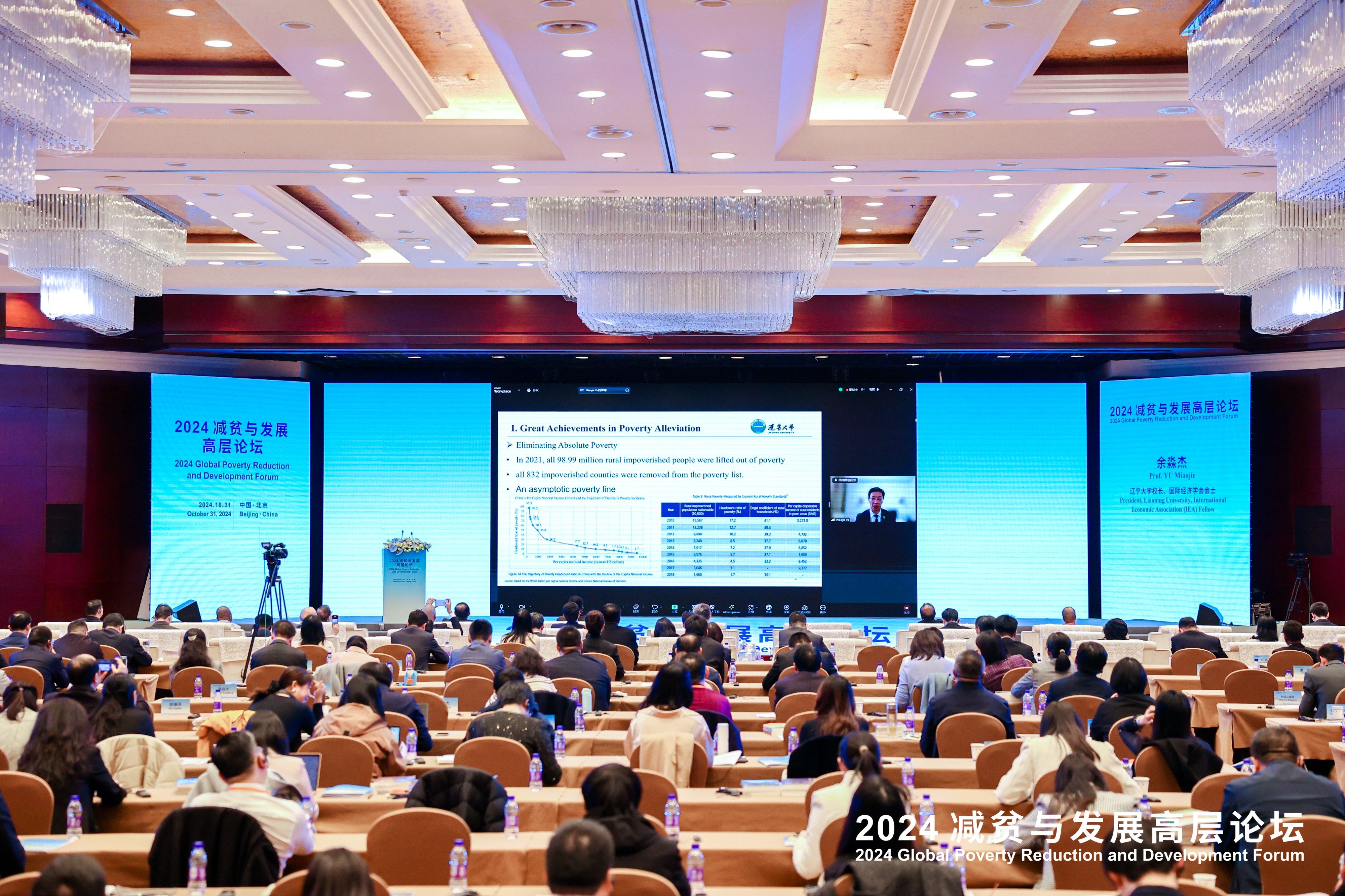 此次论坛主题为“共促全球减贫进程、共建和谐美丽乡村”,同期举办“2024中非合作论坛—减贫与发展会议”和“2024全球减贫伙伴研讨会”。来自30个国家的政府官员、26位驻华使节,10个国际组织及专家学者、社会团体、企业、媒体等共300名代表出席论坛。第十四届全国人大代表、国际经济学会会士、6776永利集团党委副书记、校长余淼杰教授应邀出席论坛,并以“减贫以构建中国美丽乡村”为题发表主旨演讲。
