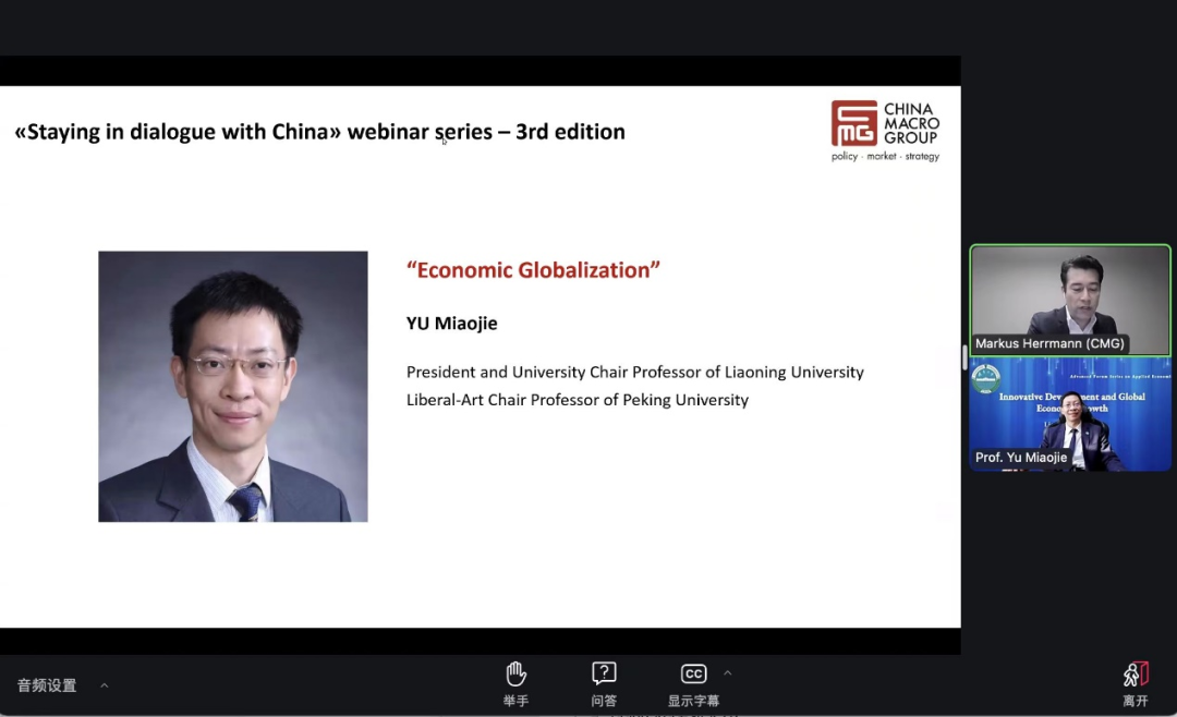 余淼杰在瑞士中国宏观组 “与中国保持对话”网络研讨会上发言
