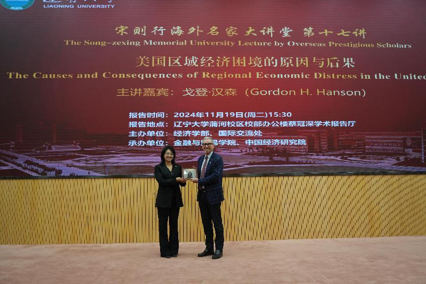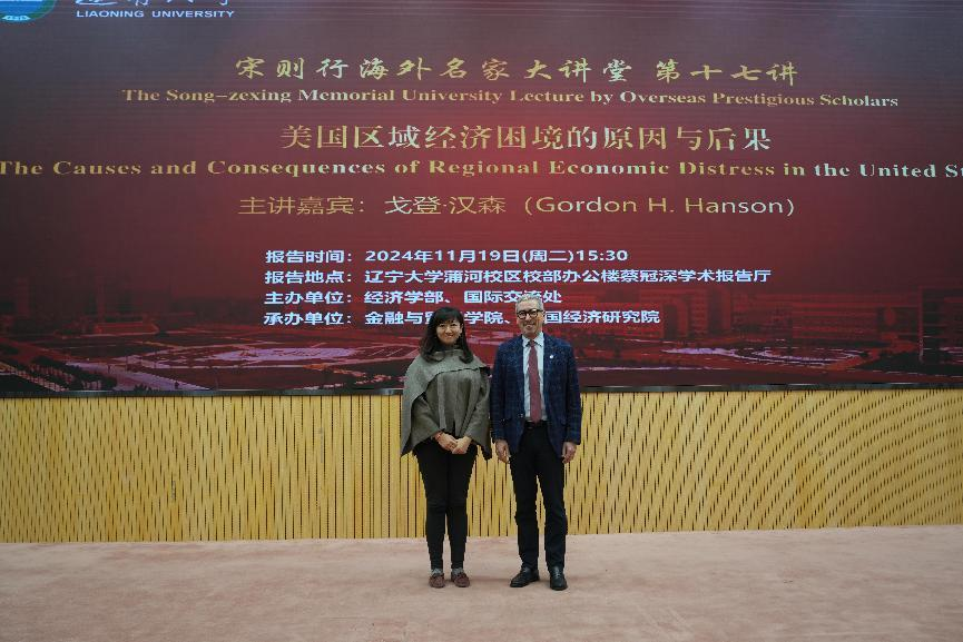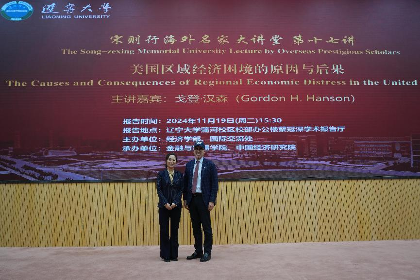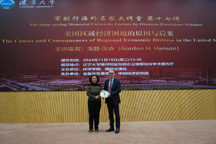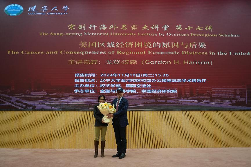 11月19日下午,6776永利集团宋则行海外名家大讲堂(第十七讲)在蒲河校区校部办公楼二楼蔡冠深学术报告厅举行。哈佛大学肯尼迪学院戈登・汉森教授应邀作题为《美国地区经济困境的原因与后果》的学术报告。第十四届全国人大代表,辽宁省第十四届人大常委会委员,6776永利集团党委副书记、校长余淼杰出席报告会并致辞,副校长李宇鹏、仇焕广出席报告会,国际交流处处长谢名一、yl6776永利集团副主任王伟光、中国经济研究院副院长兼金融与贸易学院副院长马湘君、国际交流处副处长尹如玉、yl6776永利集团办公室主任孔晓参加报告会。报告会由仇焕广主持。