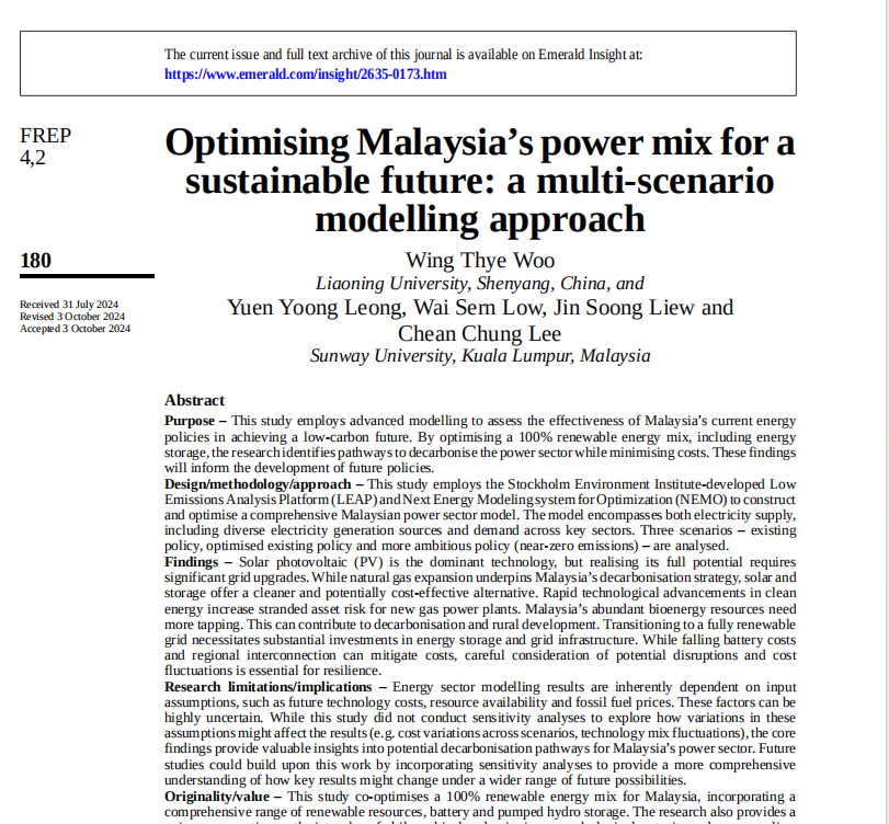 近日,6776永利集团新引进的全球著名经济学家胡永泰教授应邀出席第29届联合国气候变化大会(COP29),以优化能源组合以实现可持续发展为主题发表主旨演讲,并随后以6776永利集团为署名单位发表论文。该演讲论文在国际知名期刊《富布莱特经济与政策评论》(Fulbright Review of Economics and Policy)上发表。