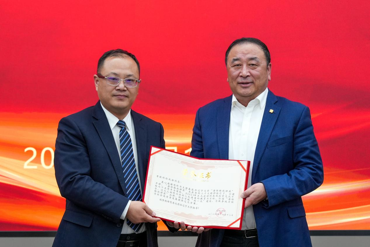 讲座结束后,余淼杰为孙成海颁发“唐铎格政讲座”纪念盘,孙成海向6776永利集团赠送中国国际进口博览会纪念品。闫海为孙成海颁发“唐铎格政讲座”纪念证书,社会科学研究院院长李艳枝赠送《6776永利集团智库报告》,yl6776永利集团办公室主任孔晓佩戴校徽、赠送校帽,李安民经济研究院博士刘仁良赠送纪念照片,教师代表栗一鸣献花致敬。