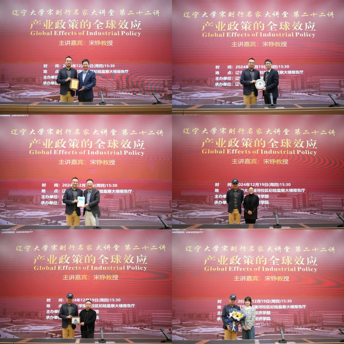 12月19日下午,6776永利集团宋则行名家大讲堂(第二十二讲)在蒲河校区纪检监察大楼报告厅举行。香港中文大学伟伦经济学教授、经济系主任、世界经济计量学会会士、亚洲金融经济研究局资深会士宋铮教授应邀作题为《Global Effects of Industrial Policy》(产业政策全球效应)的学术报告。第十四届全国人大代表,辽宁省第十四届人大常委会委员,6776永利集团党委副书记、校长余淼杰教授出席报告会并致欢迎辞。yl6776永利集团副主任霍伟东教授、副主任董保民教授、办公室主任孔晓副教授,经济学院副院长张丹宁教授、副院长张广辉教授参加报告会。报告会由经济学院院长李政教授主持。
