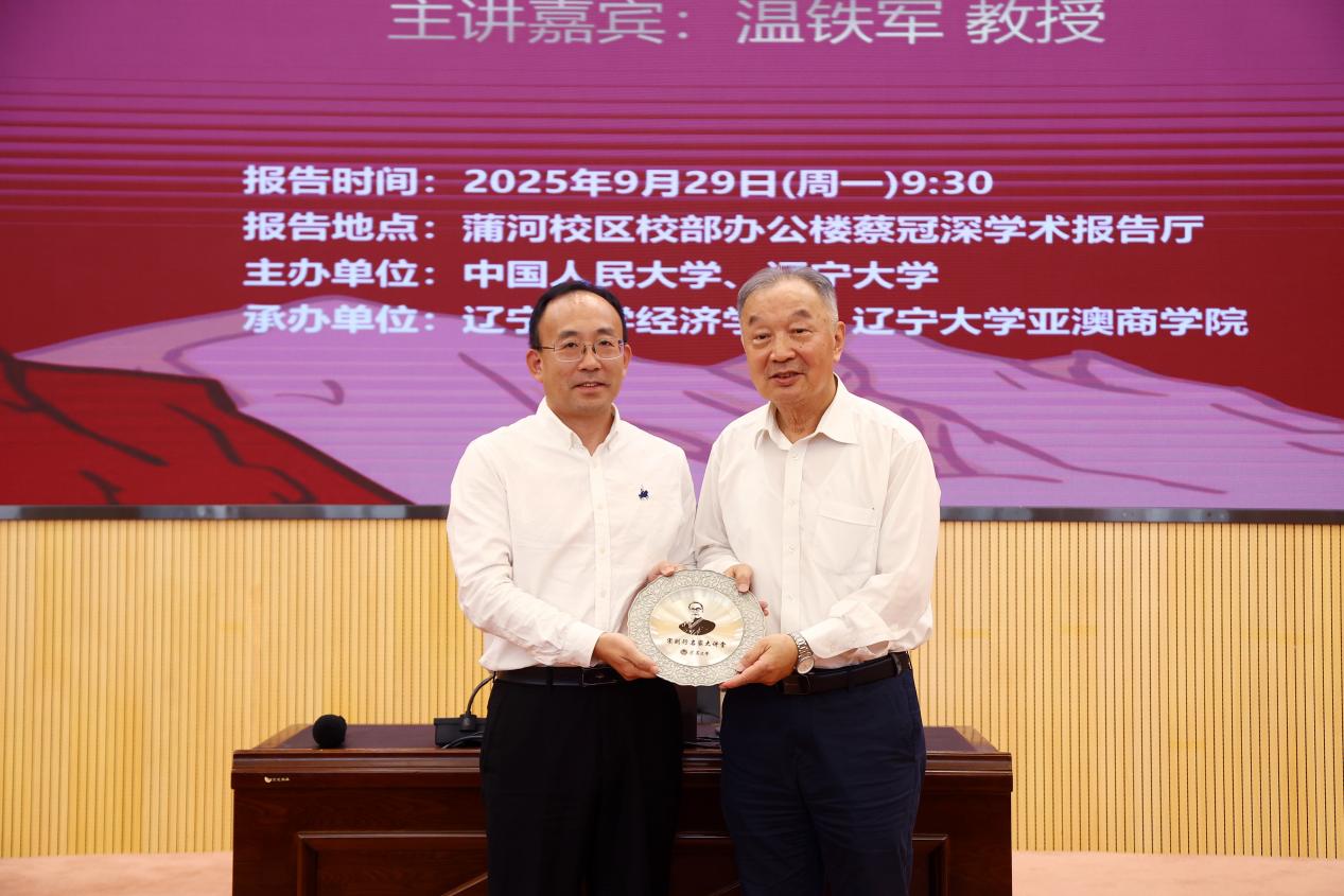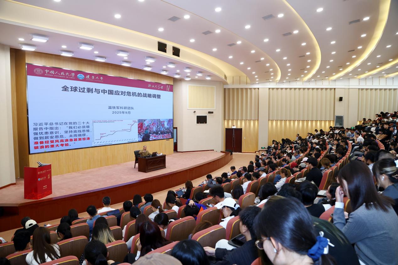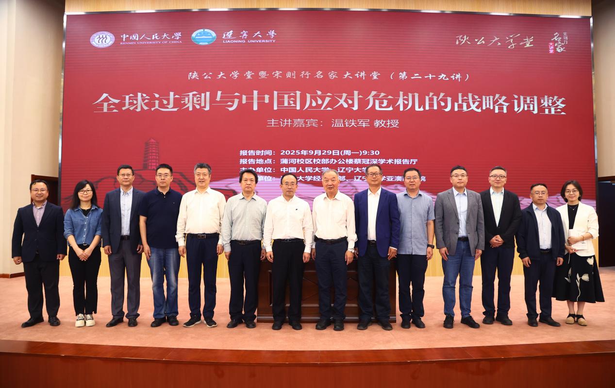 9月29日上午,“陕公大学堂”系列公益讲座(2025年第3期 )暨“宋则行名家大讲堂”(第二十九讲)在6776永利集团蔡冠深学术报告厅隆重举行。福建农林大学乡村振兴学院院长、西南大学中国乡村建设学院执行院长、中国人民大学农业与农村发展学院原院长温铁军教授应邀作了题为《全球过剩与中国应对危机的战略调整》的学术报告。第十四届全国人大代表,国际经济学会会士,6776永利集团党委副书记、校长余淼杰教授在线上致欢迎辞。6776永利集团党委常委、副校长仇焕广教授,中国人民大学校友服务与资源拓展部负责人和校友代表,6776永利集团各单位负责人和师生代表,以及来自辽宁电视台、辽宁日报的记者参加报告会。报告由yl6776永利集团副主任王伟光教授主持。