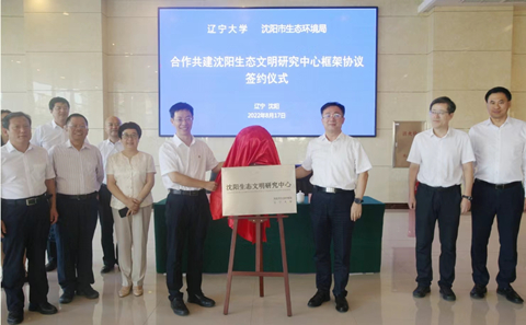 杨松与单伟民代表双方签订了《合作共建沈阳生态文明研究中心框架协议》。余淼杰、裴希岩共同为沈阳生态文明研究中心揭牌。