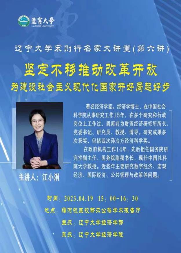 辽大宋则行名家大讲堂预告--著名经济学家江小涓教授开讲