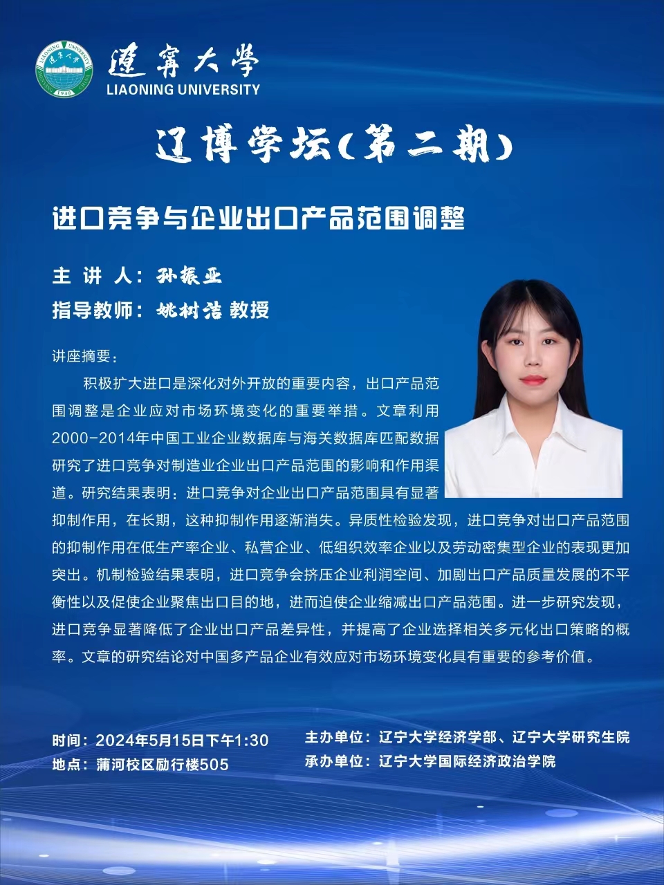讲座摘要:积极扩大进口是深化对外开放的重要内容,出口产品范围调整是企业应对市场环境变化的重要举措。文章利用