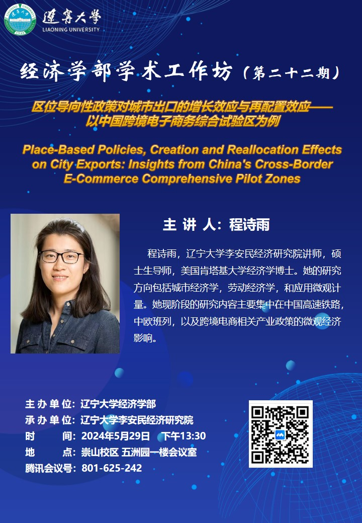 主 题:区位导向性政策对城市出口的增长效应与再配置效应——以中国跨境电子商务综合试验区为例(Place-Based Policies, Creation and Reallocation Effects on City Exports: Insights from China's Cross-Border E-Commerce Comprehensive Pilot Zones)
