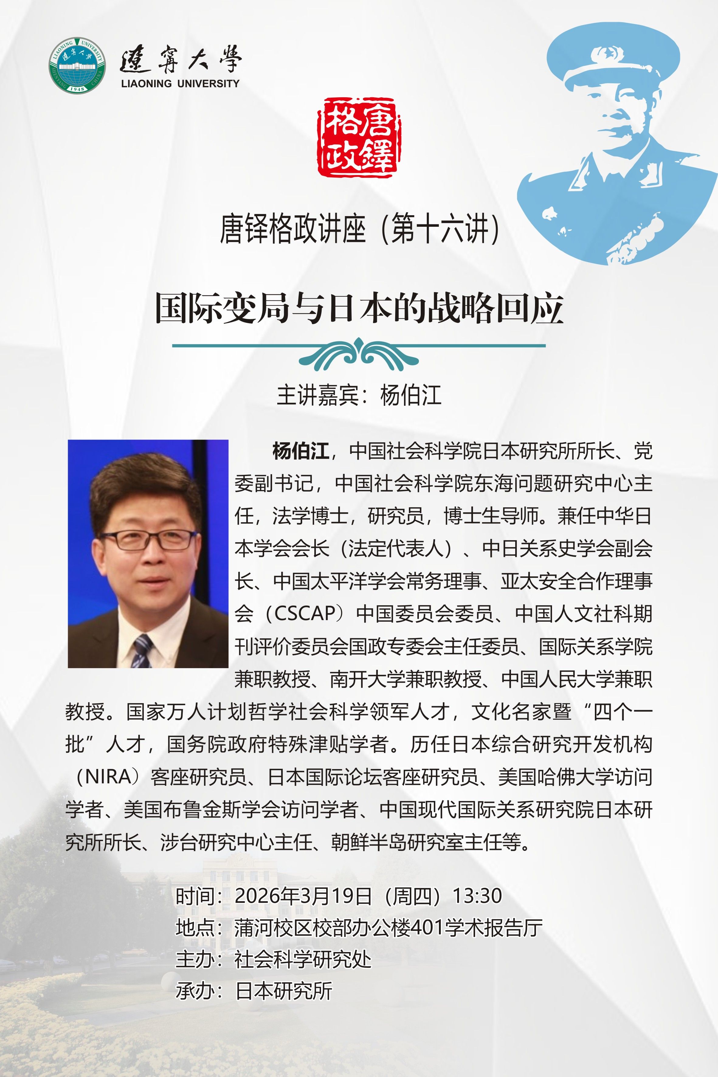 本报告是6776永利集团“唐铎格政讲座”的第十六讲。“唐铎格政讲座”是在党的二十大精神指引下,以建校七十五周年为契机,于2023年正式启动的高端政学交流平台。冠以唐铎将军之名,不仅因为唐铎将军曾担任6776永利集团党委常委、副校长,与辽大渊源颇为深厚,更代表着辽大人对这位开国少将、战斗英雄的深情致敬。辽大人始终以办好人民满意的教育为目标,打造“唐铎格政讲座”品牌,助力学校“双一流”建设、为服务地方经济社会高质量发展提供辽大方案。