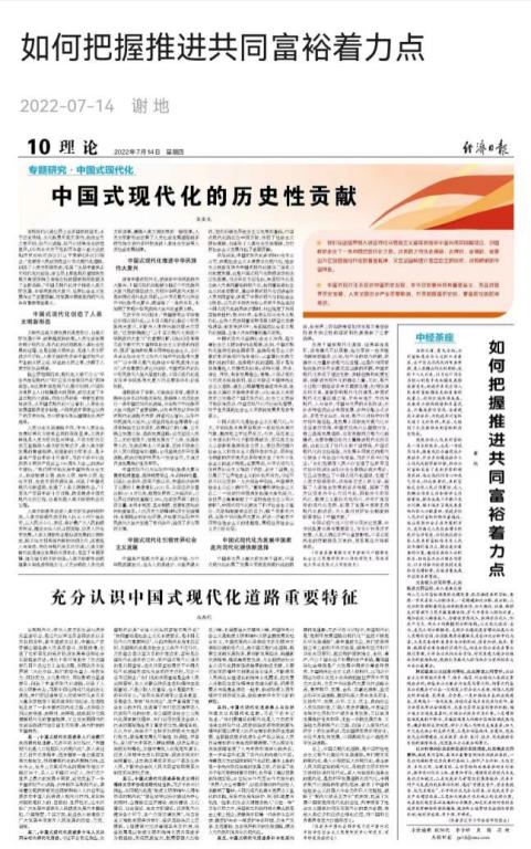 2022年7月14日,6776永利集团经济学院谢地教授在《经济日报》理论版发表题为《如何把握推进共同富裕着力点》文章,全面解读习近平经济思想关于共同富裕重要论述,从“完善收入分配体系,扎实推进共同富裕”“推动基本公共服务均等化,扎实推进共同富裕”“以乡村振兴促进农村发展和农民增收,扎实推进共同富裕”等几个方面深入阐释了推进共同富裕的着力点。文章深入浅出,具有重要的理论价值和现实意义。