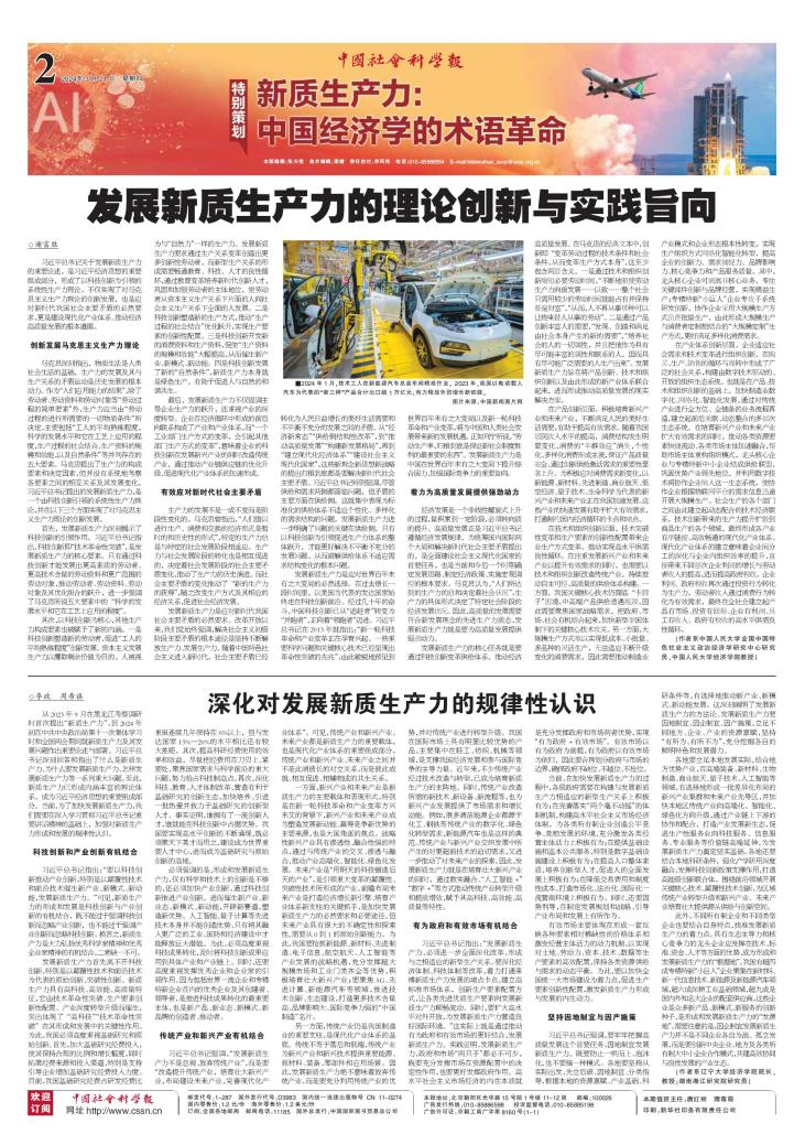 2024年3月21日,经济学院李政教授、湖南湘江研究院研究员周希禛在《中国社会科学报》发表理论文章《深化对发展新质生产力的规律性认识》。