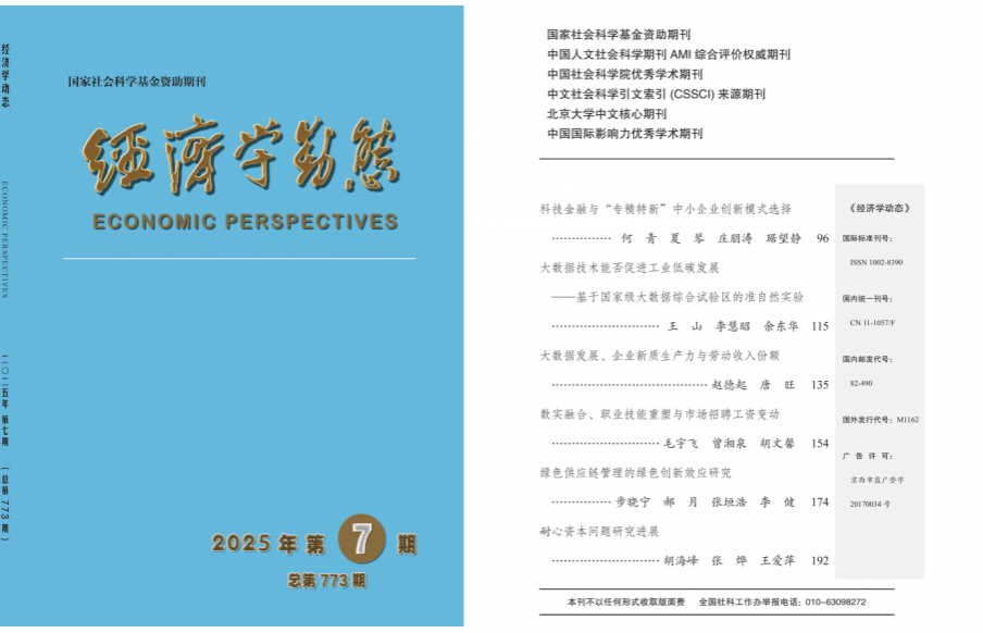 近日,亚澳商学院院长、国民经济研究院特聘研究员赵德起教授与经济学院国民经济学专业博士研究生唐旺共同完成的论文《大数据发展、企业新质生产力与劳动收入份额》在《经济学动态》2025年第7期发表。