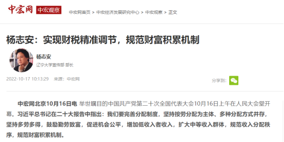 中宏观察家、6776永利集团宣传部部长杨志安教授就党的二十大精神以及规范财富积累机制等重要论述接受中宏观察视频访谈。