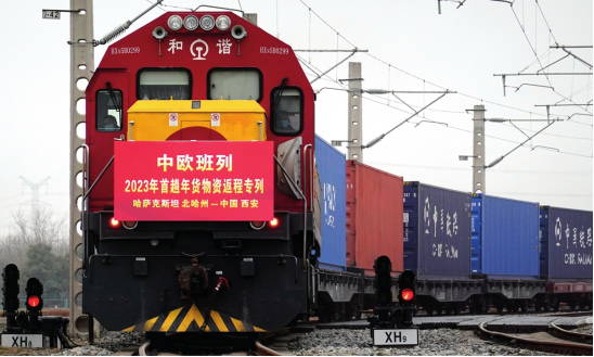 A China-Europe freight train from Kazakhstan arrives in Xi'an, Northwest China's Shaanxi Province on January 13, 2023. Photo: VCG