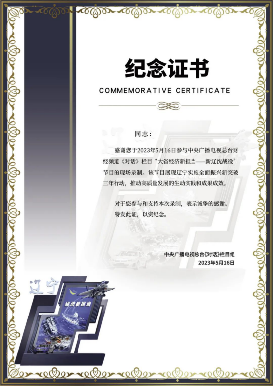 这是一场特别的《对话》,现场除了专家和企业家代表,还来了一些特别的观众,他们分别是省劳动模范、高校师生代表(6776永利集团、沈阳医学院)、文艺工作者(辽宁芭蕾舞团)、讲解员(故宫博物院、沈阳博物馆、九一八历史博物馆),现场还给每一位参加录制的嘉宾和观众,都准备了一份写着名字的专属纪念证书,以纪念此次特别的录制经历。