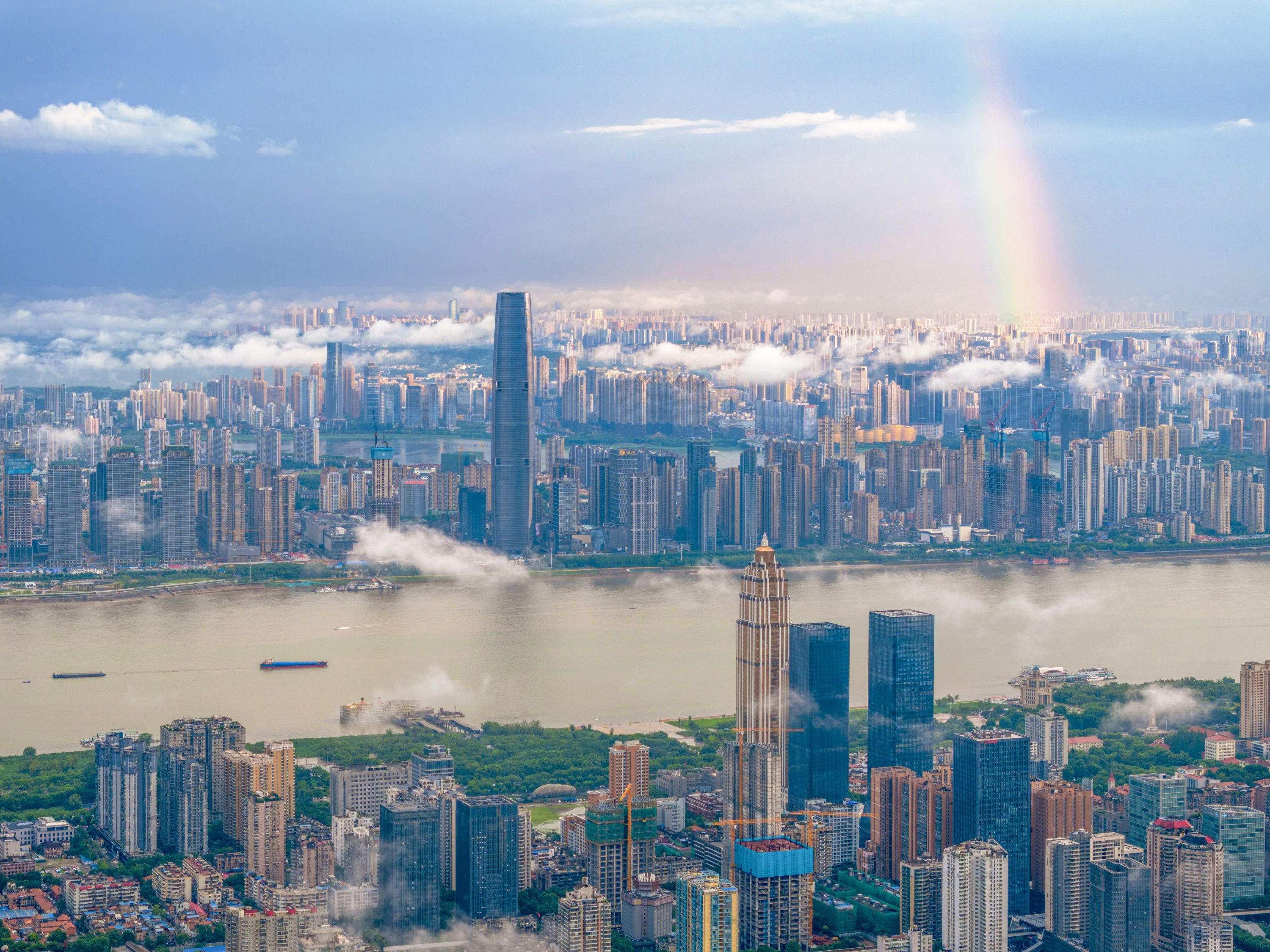 江城武汉,彩虹与城市相映。城市摄影队金红 摄