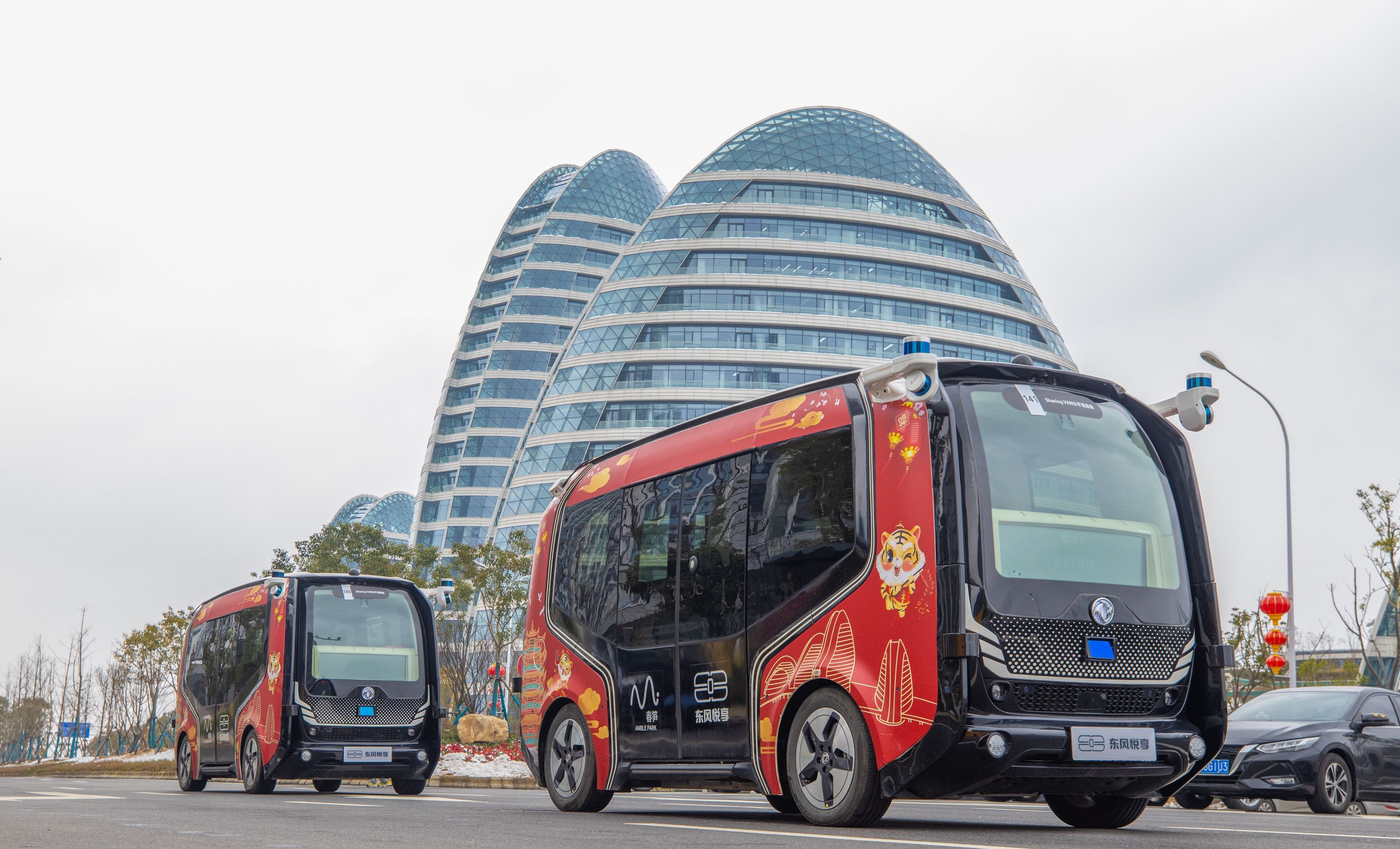 无人驾驶巴士行驶在武汉街头。
