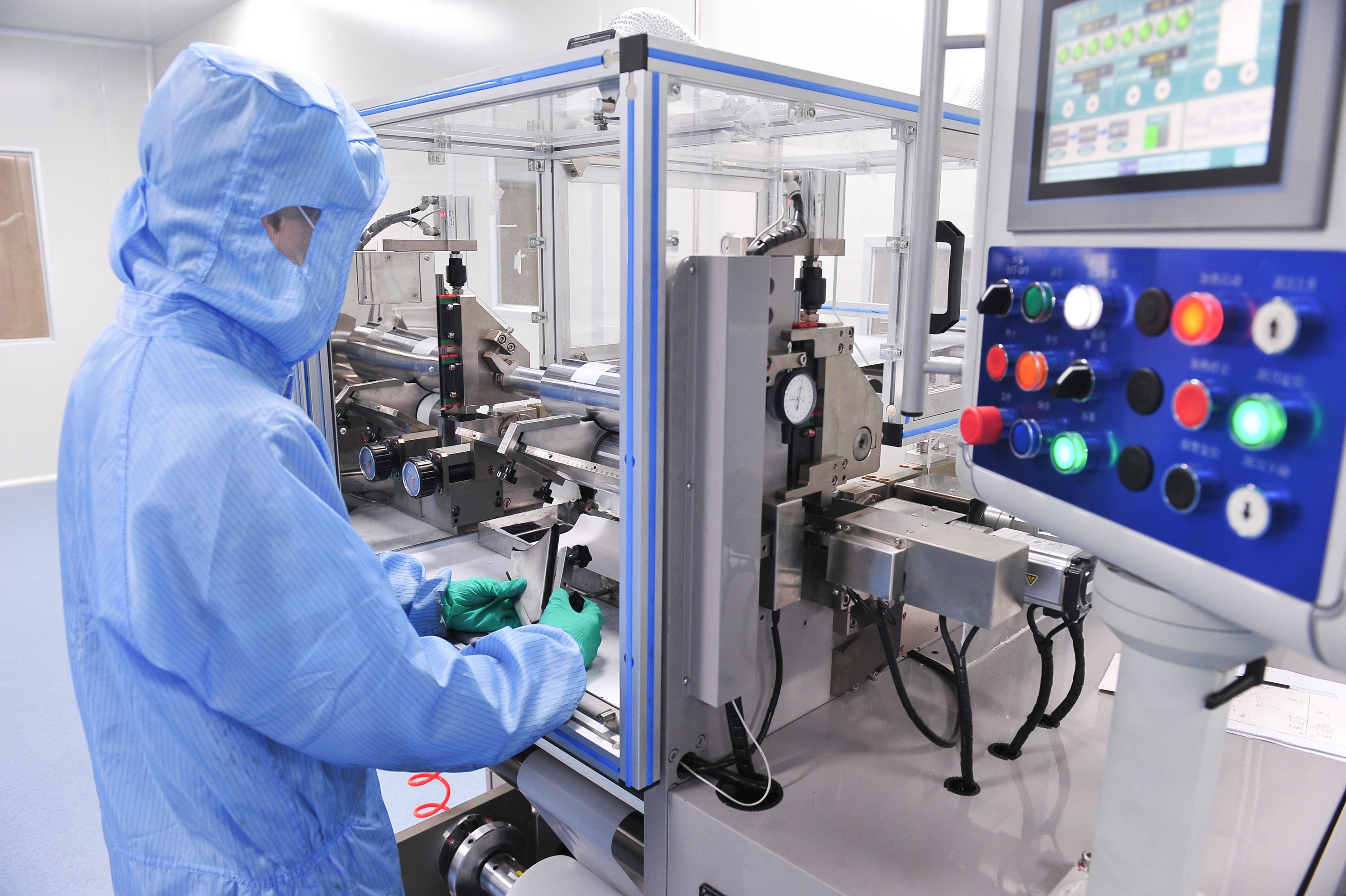 武汉理工氢电工作人员在膜电极自动化生产线操作。
