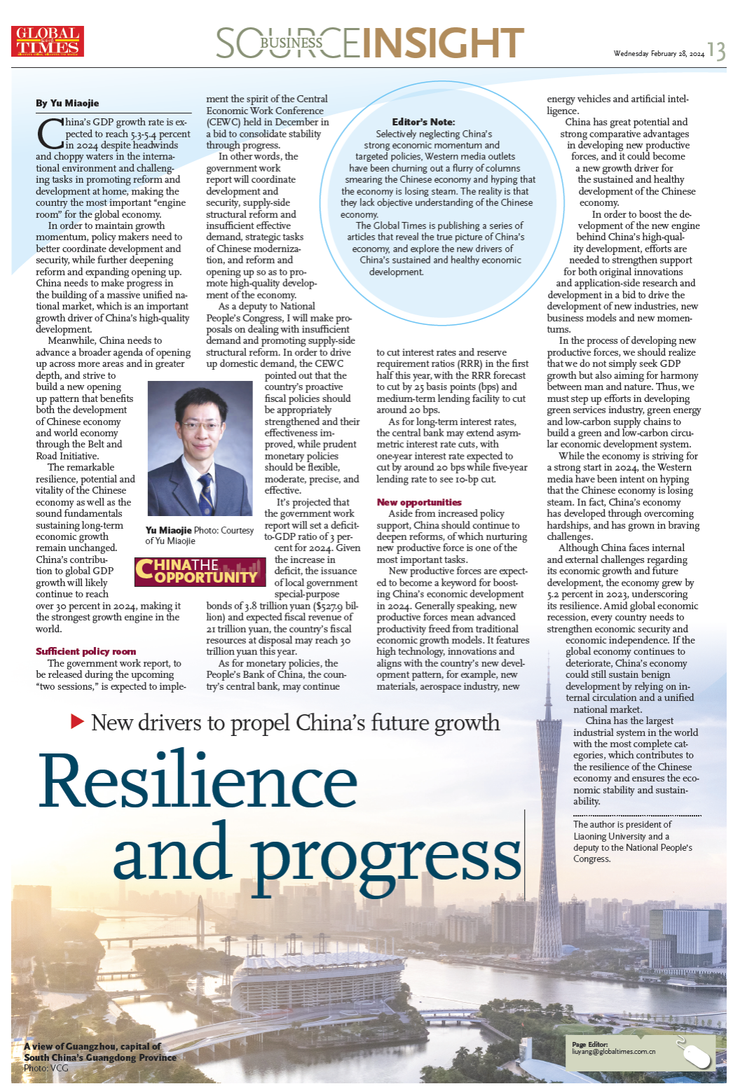 The remarkable resilience, potential and vitality of the Chinese economy as well as the sound fundamentals sustaining long-term economic growth remain unchanged. China's contribution to global GDP growth will likely continue to reach over 30 percent in 2024, making it the strongest growth engine in the world.