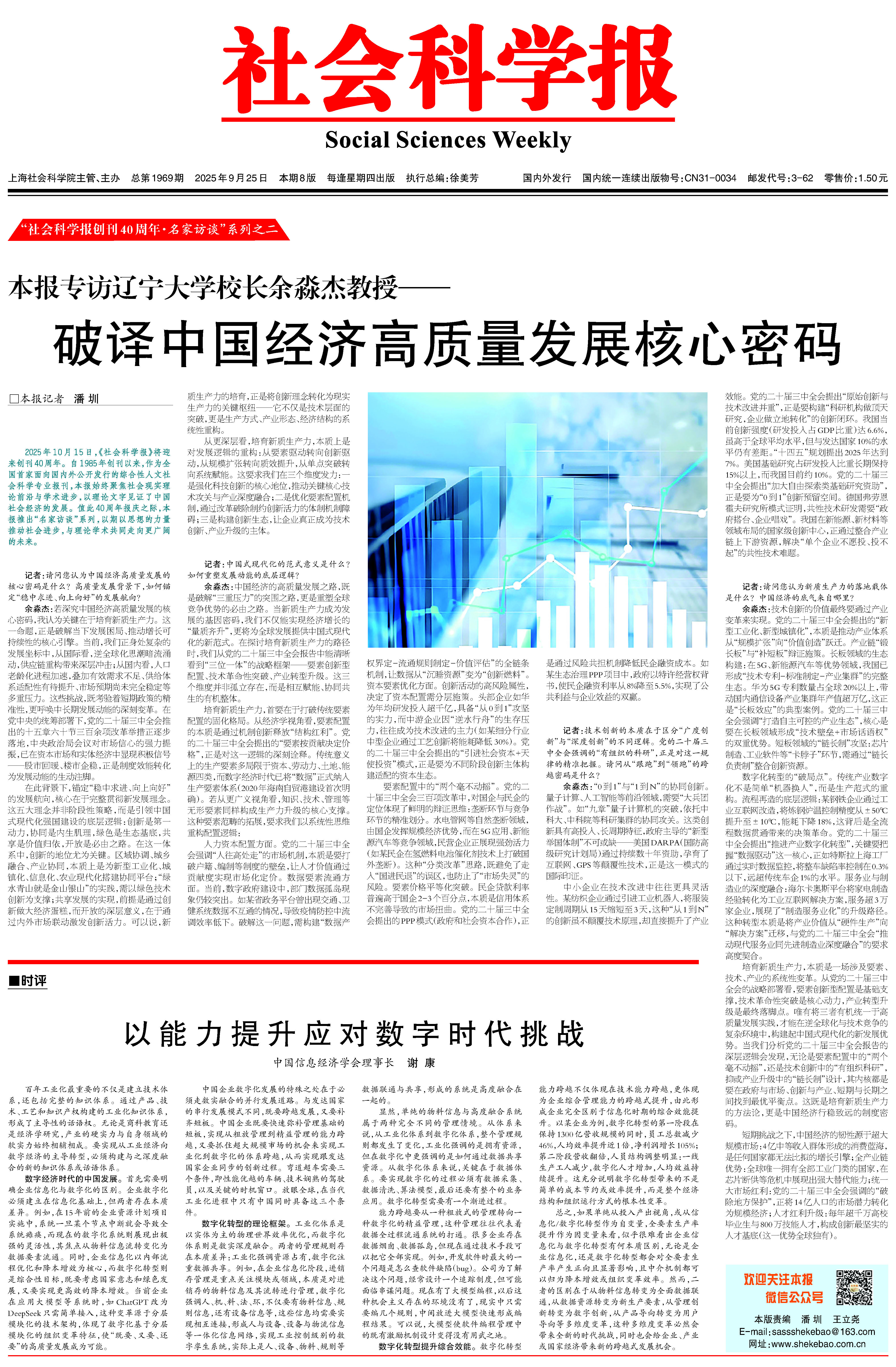 2025年10月15日,《社会科学报》将迎来创刊40周年。自1985年创刊以来,作为全国首家面向国内外公开发行的综合性人文社会科学专业报刊,本报始终聚焦社会现实理论前沿与学术进步,以理论文字见证了中国社会经济的发展。值此40周年报庆之际,本报推出“名家访谈”系列,以期以思想的力量推动社会进步,与理论学术共同走向更广阔的未来。